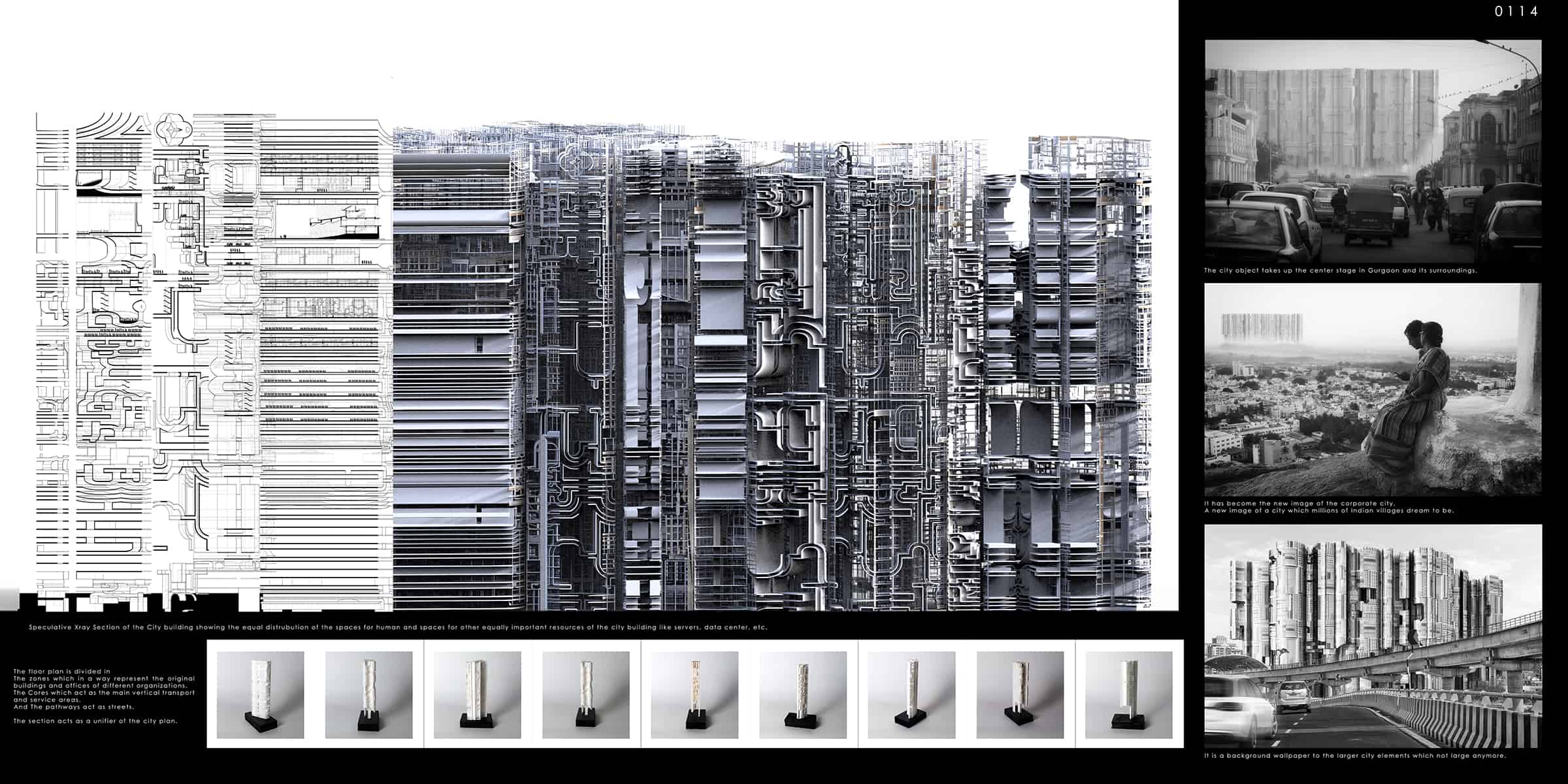 According to the Belgian philosopher, Lieven de Cauter, we experience our civilization only in capsular states. Based on this hypothesis, Gurgaon NOW asks what consequences such encapsulation – what Peter Sloterdijk identifies as spheres or foam formation, could have on our urban condition. The question is pursued through the architectural program of a city of call centers – that is, could serve as a model and organizational prototype for a city and the constant expansion of urbanization? The design tasks contextualize the Gurgaon as a prototype relative to the existing growing cities in developing countries. The result of the design process is a strange city building whose formal principle derives from the misfit between other, different buildings and whose form is at once familiar and strange.
