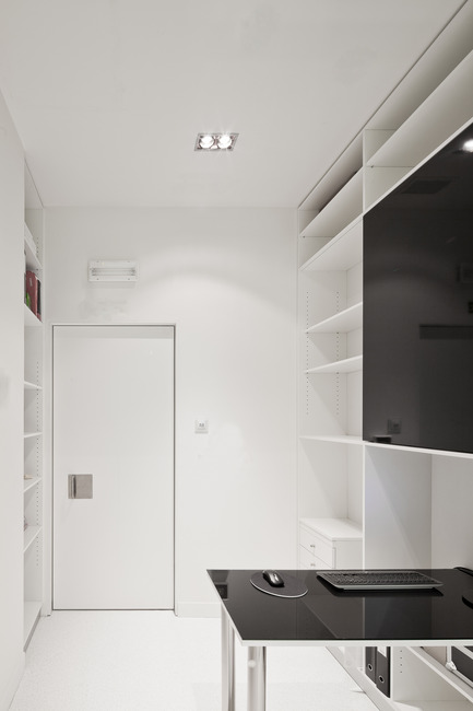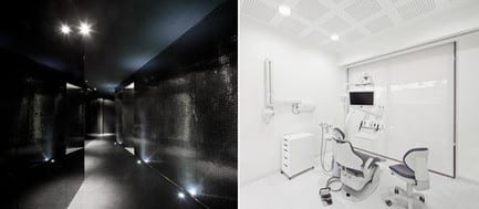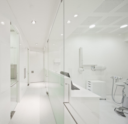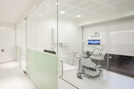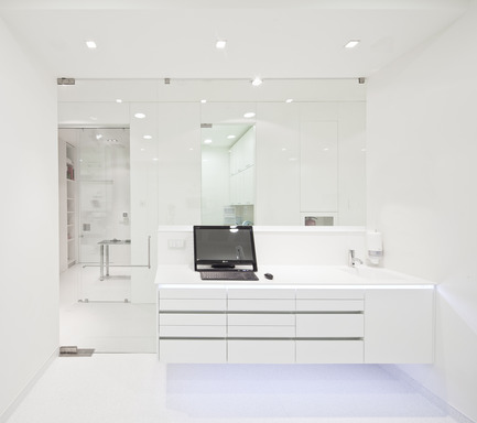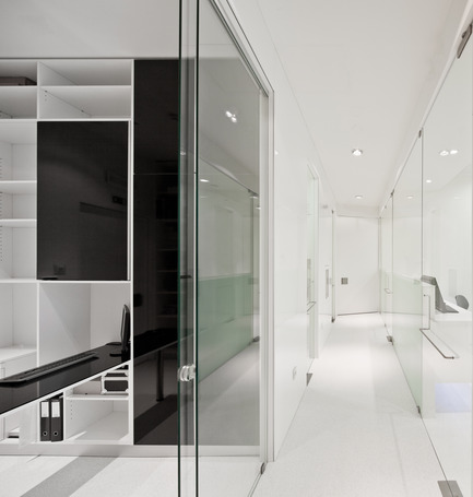 The premise of spatial and functional duality was obtained through the introduction of a curved organic volume that runs through the entire space, and closes a new interior space. This allows for a full/empty, dark/light and firmness/relax interpretaion. The void space around the internal volume functions as reception area and waiting room. The organic volume houses all the medical facilities.